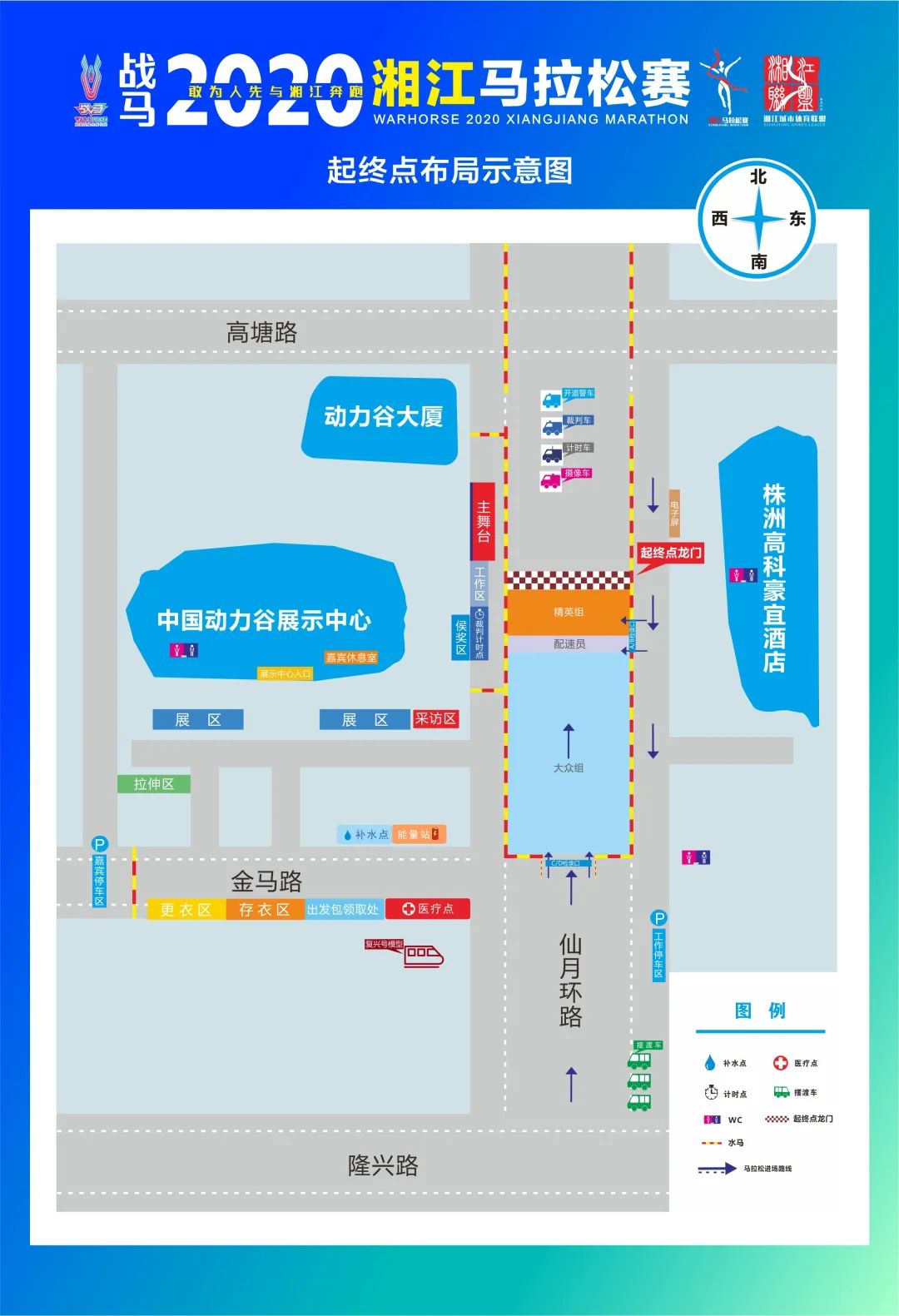 4、終點更衣區設在金馬路仙月環路路口南側(詳情見起終點布局示意圖)